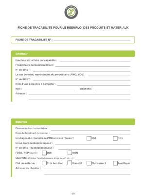 la fiche de traçabilité pour le réemploi des produits et matériaux est un des résultats du GT sur la déconstruction et la traçabilité.